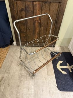 1960s Record Magazine Holder Cart Aluminum & Teak Wood Trim *** MCM$45Lake Worth, TX