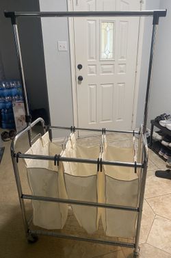 3 Bag Laundry Sorter With Adjustable Clothes Bar$50San Antonio, TX