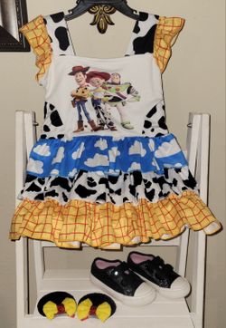 Disney Toy Story Outfit: Dress, Shoes,& Mickey Ear Clip Bows$25San Antonio, TX