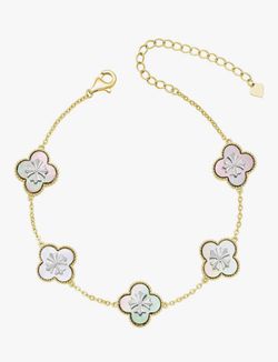 18K Gold Plated Clover Bracelet, Mother of Pearl Four Leaf Flower Bracelet for Women, 6.9" + 2" Adjustable Bracelet, Cross Motif, Gold or Silver Tone$15City Of Industry, CA