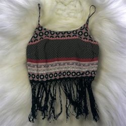 Event Boho Fringe Cropped Cami Top - Black & Red Geometric Print size s/m$12San Antonio, TX