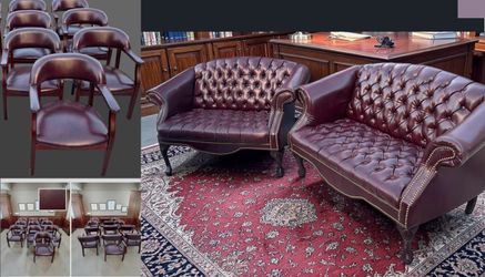 Genuine Chippendale Style Tufted Leather Camelback Sofa Set & Office Waiting Room Chairs $250West Palm Beach, FL