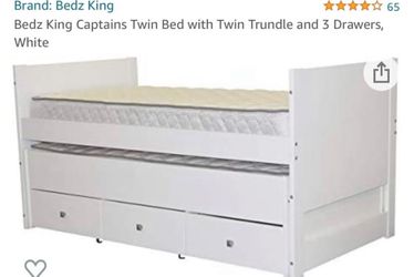 Bedz King Captains Twin Bed with Twin Trundle and 3 Drawers, White- Cama Blanca Tipo Litera Talla Twin- Con Cajones $300Modesto, CA