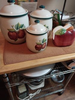 3 Piece Ceramic Canister Set And Matching Napkin Holder$10Aurora, CO