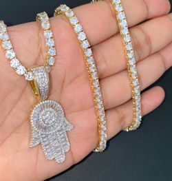 Praying Hands Pendant With Cuban Real 925 Sterling Silver Gold $180Los Angeles, CA