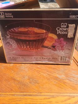 Anchor Hocking Crown Point Punch Bowl Set β 18 Piece Service for 8