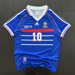 France Zidane 1998 Soccer Jersey-Large: Messi Ronaldo Neymar, Brazil, Argentina, Portugal, Barcelona, Real Madrid, Manchester United, Liverpool$55Santa Fe Springs, CA