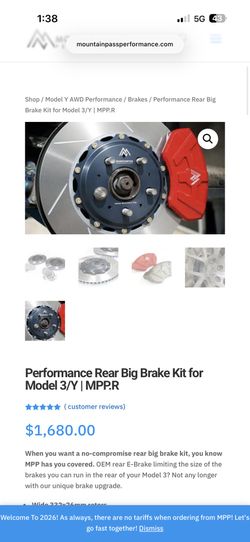Performance Rear Big Brake Kit for Tesla Model 3 Or Y | MPP.R$1,500San Diego, CA