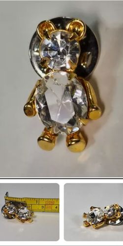 Gold Tone Teddy Bear Tie Tack Hat Lapel Pin 3/4" Rhinestone White$10Los Angeles, CA