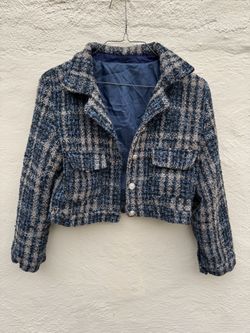 Women's Tweed Button Front cropped blazer Jacket Navy Blue Size: S Worn once only $15Pittsburg, CA