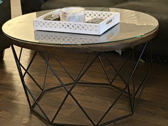 Round 32 X 32 Wood And Metal Coffee Table With Glass Top$100El Cajon, CA