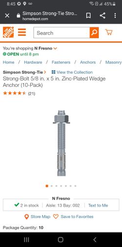 5/8 x 5 1/2 wedge anchor bolts$75Fresno, CA