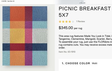 FLOR Picnic Breakfast Multi-Color Area Rug - 5 X 7 - Like New.$200Seattle, WA
