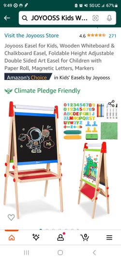 Wooden Easel with Paper Roll - Adjustable Magnetic Double Sided Drawing Board Whiteboard & Chalkboard Dry Easel Board