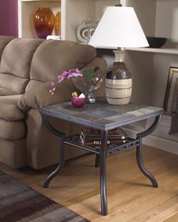 (3) Square Metal End Tables With Slate Stone Top$250Oakland Park, FL