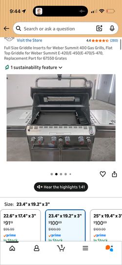 New Full Size Griddle Inserts for Weber Summit 400 Gas Grills, Flat Top Griddle for Weber Summit E-420/E-450/E-470/S-470, Replacement Part for 67550 G$50San Antonio, TX