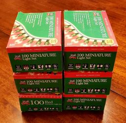 6 Sets of 100 Miniature Light Sets All Red Bulbs. 21.5 Feet Long. (NEW IN THE BOX $2/Ea)$2Alta Loma, CA