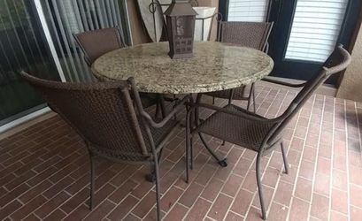 5pc Brown Metal Woven Patio Set 44” Granite Round Table set$100Ocoee, FL