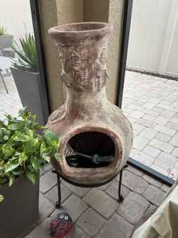 XL Beautiful Mexican Clay Leaf Design Wood Burning Chiminea Fire Pit W/stand$110Ocoee, FL