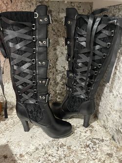 New Black high Heel Boots With Ribbon Ties And lace Accent Size 41 USA 9$12Bakersfield, CA