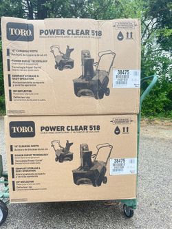 Toro Snowblower 18” Powerclear 518ZE Pull Or Electric Start Option New $390 Each $390Lombard, IL