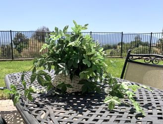 Green Silk Plant Decor In White Wicker Handle Basket $14Corona, CA