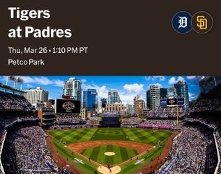 SoldPadres vs Tigers opening day 3/26 1:05pm$135La Mesa, CA