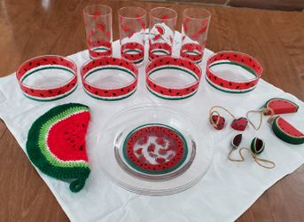 Watermellon Dishes, Bowls, Cups, Clock, Platter, napkins, Oven Mitts, and more Acessoraries $75Riverside, CA