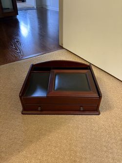 Cherry color Wood & leather charging station with lots of compartments for jewelry and watches also in excellent condition $20Tustin, CA