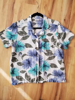 Hawaii Style Womens Shirt Floral Medium Blue Teal Flowers Short Sleeve Machine Wash$8Lincoln, NE