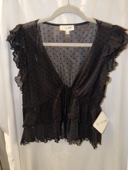 BNWT Women Blouse, Junior Size Medium, Tie Closure, Black, Ruffle & Polka Dot Detail$10Las Vegas, NV