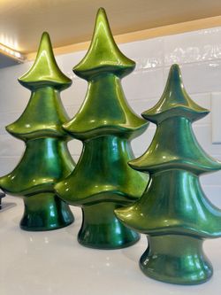 Ceramic Green Metallic Christmas Tree Holiday Decor Set Of 4$30Queen Creek, AZ