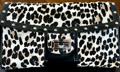 White House Black Market Crossbody/Clutch Leopard Print Fur & Patent Leather Bag$25Queen Creek, AZ