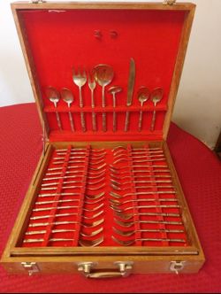 Vintage 1970s, 108 Pc Gold-Tone Bamboo Handle Style, Silverware Flatware Set. Service For 12$100Indianapolis, IN
