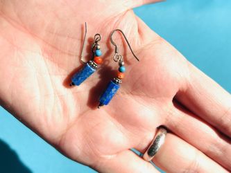 Genuine sterling silver earrings with lapis lazuli, turquoise, and red coral beads.$50Pasadena, CA