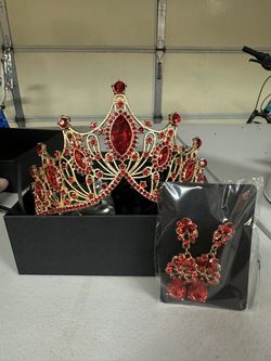 Red Pageant Crown With Matching Earrings $15Menifee, CA