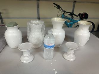 4 White Vases And 2 Candle Holders $5Menifee, CA