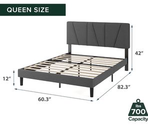 Zinus Queen Maya Upholstered Bed Frame with Asymmetric Headboard, Durable Wooden Slats, Sturdy Framework, Noise Free Sleep, No Box Spring Needed, Easy$25Pompano Beach, FL