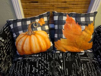 Set Of 2 Fall Autumn Pillow Shams With Black & White Check Pumpkin Leaf Paytyen$12Greensburg, PA