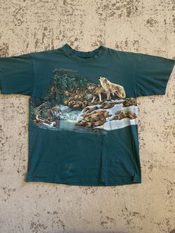 Vintage 90s Wolves All Over Print Shirt Single Stitch Double Sided XL $20Sacramento, CA