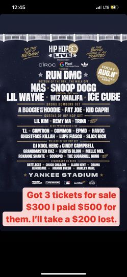 Tickets For Hip Hop 50 Anniversary $300The Bronx, NY