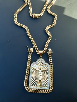 14K gold plated 6mm Cuban Link chain and pendant$70Hollywood, FL