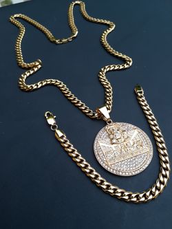 14K gold plated 6mm chain pendant and bracelet set$100Hollywood, FL