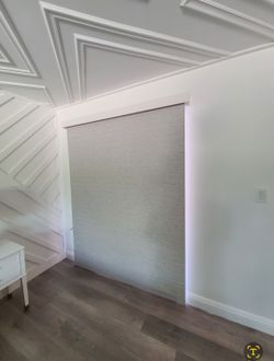 #604) MOTORIZED ROLLER SHADE LIGHT GREY, . INSIDE/OUTSIDE MOUNT (1) W 34.5"×95 3/4" LENGTH (1) 34 1/4"× 118" LENGTH PRICE FOR EACH SHADE 50%OFF$180Mesa, AZ