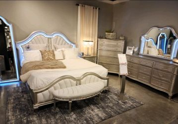 Bedroom Set Platinum New Led Light Solid Wood Bedroom Silver$1,745Miramar, FL