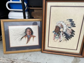Vintage 80’s Framed Matted Indian Maiden Cross Stitch Native American Wall Art$100Katy, TX