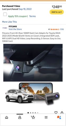 Fitcamx 4K Front + 1080P Rear Dash Cam (RAV4 2022–2025) w/ 128GB SD Card$150San Diego, CA