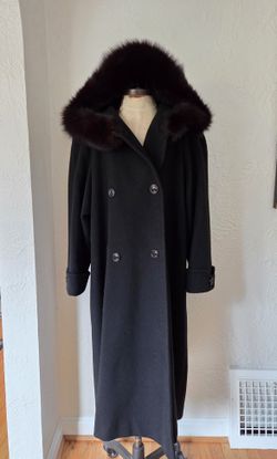 100% Black Cashmere Overcoat With Fox Fur Hood Size 2XL $349Portland, OR
