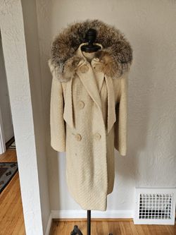 Cream Wool Tweed Coat With Lynx Fur Collar Size S NO OFFERS $299Portland, OR