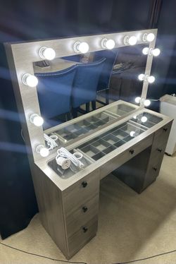 Brand New Makeup Vanity Table Rustic Gray Wood with LED Lights 7 Drawers and USB (Type A & C)$350Sloughhouse, CA